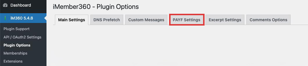 PAYF (Payment Failed) Settings allow you to configure the message displayed to users whose payment has failed or is pending.